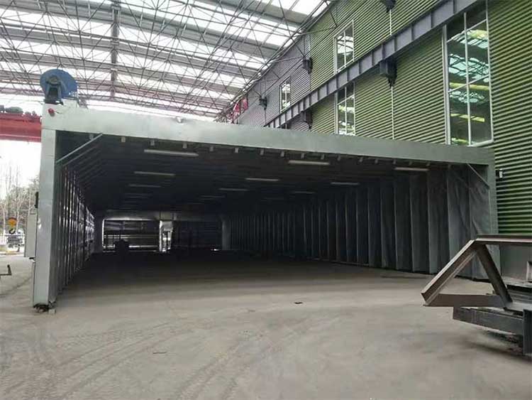 ,因?yàn)殇摴艿墓ぜ容^長(zhǎng),為了方便工件的運(yùn)轉(zhuǎn),提高生產(chǎn)效率,以及有效的收集漆霧顆粒,故需要一臺(tái)長(zhǎng)24米,寬6米,高4米的移動(dòng)伸縮噴漆房移動(dòng)噴漆房框架使用鍍鋅方管制作,移動(dòng)伸縮房蓬布使用三防布制作,內(nèi)部設(shè)有防爆炸照明裝置,佑泰環(huán)保制作的移動(dòng)伸縮噴漆房,使用機(jī)器人焊接,安裝后外觀美麗大方,結(jié)實(shí)耐用。