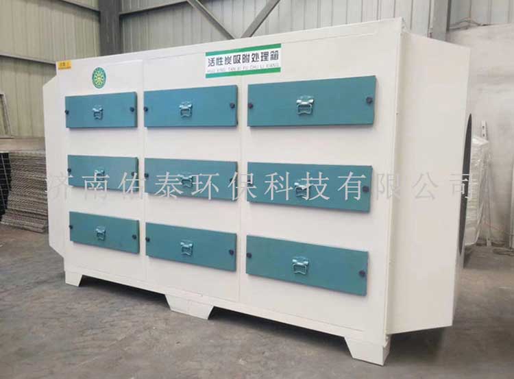 當(dāng)廢氣由風(fēng)機(jī)提供動力,負(fù)壓進(jìn)入環(huán)保箱后進(jìn)入活性炭吸附層,由于活性炭吸附劑表面上存在著未平衡和未飽和的分子引力或化學(xué)鍵力,因此當(dāng)活性炭吸附劑的表面與氣體接觸時,就能吸引氣體分子,使其濃聚并保持在活性炭表面,此現(xiàn)象稱為吸附。利用活性炭吸附劑表面的吸附能力,使廢氣與大表面的多孔性活性炭吸附劑相接觸,廢氣中的污染物被吸附在活性炭表面上,使其與氣體混合物分離,凈化后的氣體高空排放。活性炭環(huán)保箱是一種干式廢氣處理設(shè)備,由箱體和填裝在箱體內(nèi)的吸附單元組成。