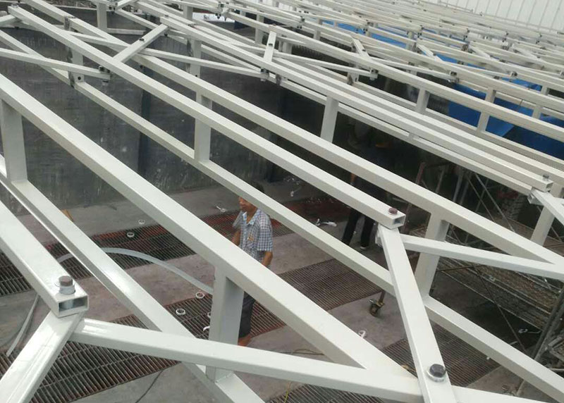 三、頂部伸縮噴漆房是移動伸縮噴漆房的一種,伸縮頂蓬兩端有固定的支撐,伸縮裝置在固定支撐上面伸縮移動,方便工件運轉(zhuǎn)。以下為您展示安裝圖片。