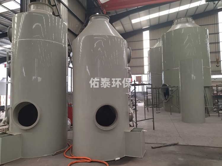 前言:噴淋塔有多種叫法,比如廢氣塔、酸霧塔、凈化塔、洗滌塔、吸收塔、吸附塔、酸霧噴淋塔等名稱,它是常見的廢氣處理設(shè)備,制作材料常見的是pp板,碳鋼,不銹鋼,玻璃鋼等材質(zhì)做成,噴淋塔工作時廢氣由風(fēng)管引入凈化塔,經(jīng)過填料層,廢氣與吸收液進液兩相充分接回觸吸收中和反應(yīng),廢氣經(jīng)過凈化后,再經(jīng)除霧板脫水除霧后由風(fēng)機排入大氣。吸收液在塔底經(jīng)水泵增壓后在塔頂噴淋而下,回流至塔底循環(huán)使用。凈化后的廢氣直接排放到大氣中或者進入下一級廢氣處理設(shè)備。噴淋塔由塔體、噴淋層、填料層、除霧層、循環(huán)水箱、循環(huán)水泵等部分組成,佑泰環(huán)保小編為介紹一下噴淋塔的每個組成部分。