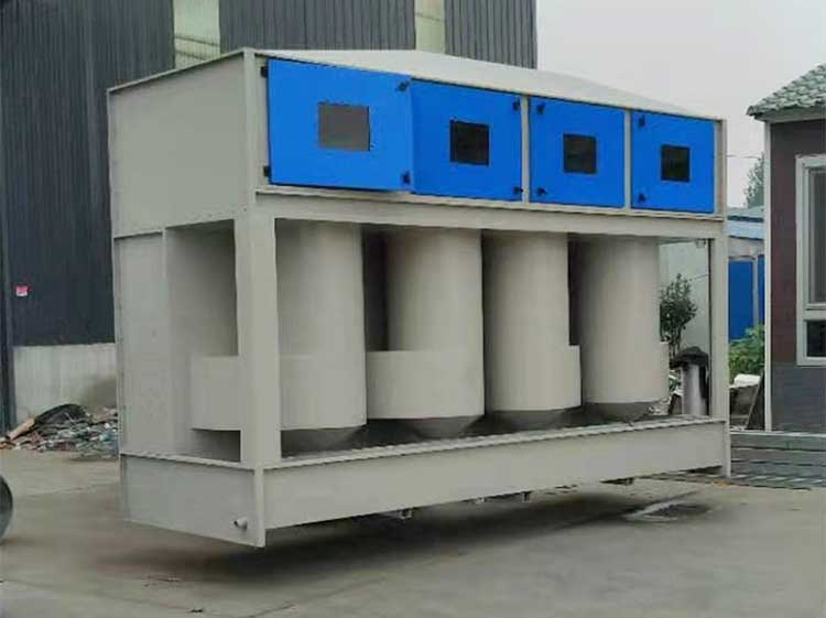 2.設(shè)備結(jié)合水簾、噴淋、氣旋式的優(yōu)點,設(shè)備運行中使廢氣與水混合充分混合,從而提高廢氣處理效率。打破傳統(tǒng)的水簾廢氣處理方式。