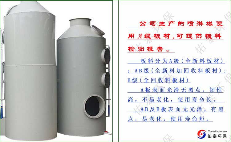 2、本公司噴淋塔配有三層浮球,二層噴淋,旋流板,及芯銅電機(jī)水泵,板料使用A級(jí)板。可按要求定制。