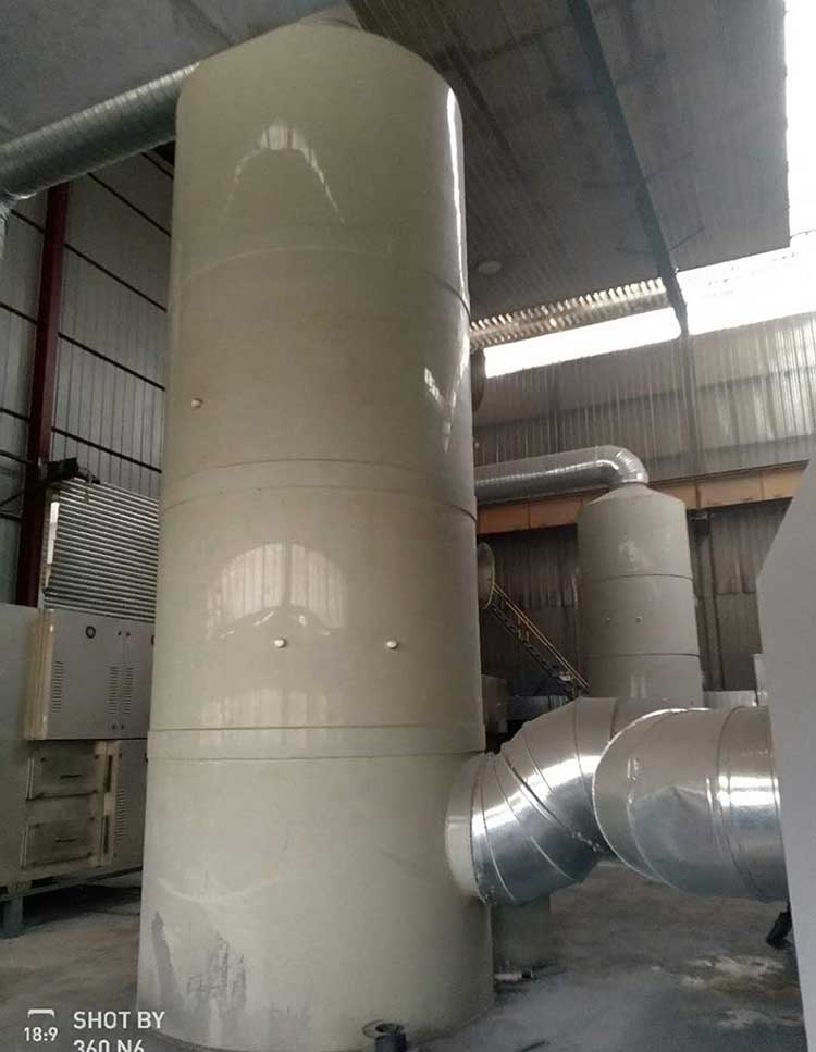 pp噴淋塔可廣泛應(yīng)用于化工、電子、冶金、電鍍、紡織(化纖)、食品、機(jī)械制造等行業(yè)過(guò)程中排放的酸性、堿性廢氣的凈化處理。如調(diào)味食品、制酸、酸洗、電鍍、電解、蓄電池等。PP酸堿廢氣中和塔其結(jié)構(gòu)包括塔體、氣體分布器、霧化器、液體再分布器、除沫器以及自控儀表元器件。由于PP耐腐蝕,抗酸堿,并且相對(duì)造成較低,所以尤其在酸堿廢氣治理行業(yè)中具有廣泛的應(yīng)用。