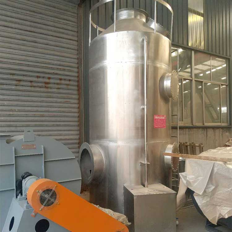 1.1、噴淋塔分單塔和雙塔兩種。使用環(huán)形塔體,采用蘭分段連接制成。主要包括儲(chǔ)液箱、塔體、進(jìn)風(fēng)段、噴淋層、填料層、旋流除霧層、觀察窗、出風(fēng)口等部分。本酸霧凈化塔為環(huán)形塔體,由聚丙烯、PVC等材料通過(guò)法蘭連接分段制成。其具體結(jié)構(gòu)由進(jìn)氣段、填料層、二級(jí)噴淋段、旋流板、出氣口、管路等部分組成。PP酸霧凈化塔效果好,抗腐蝕能力強(qiáng),強(qiáng)度高,噪音低,省電省力,拆裝維護(hù)方便。